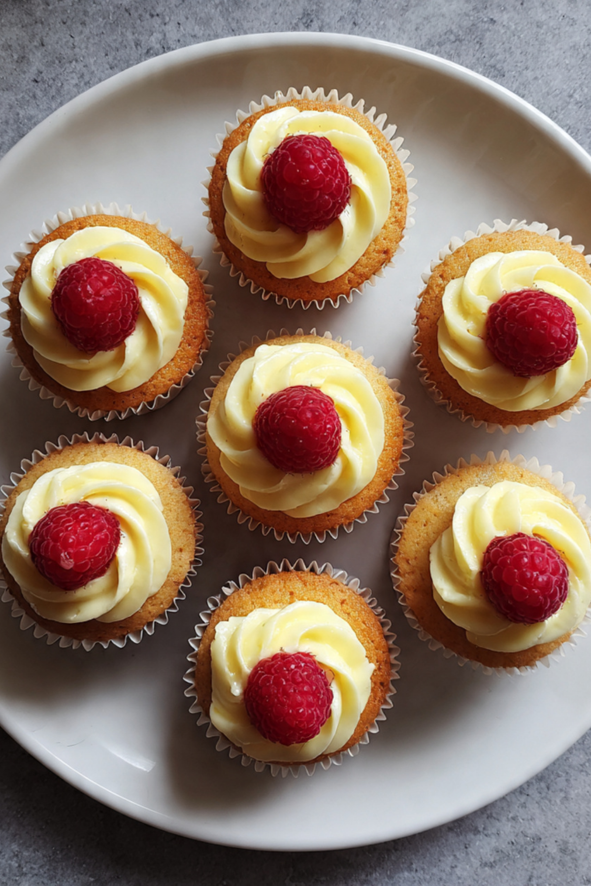 Light and fluffy vanilla cupcakes topped with a tangy lemon cream and fresh raspberries. Perfect for any occasion, they offer a beautiful balance of sweetness and citrusy brightness.