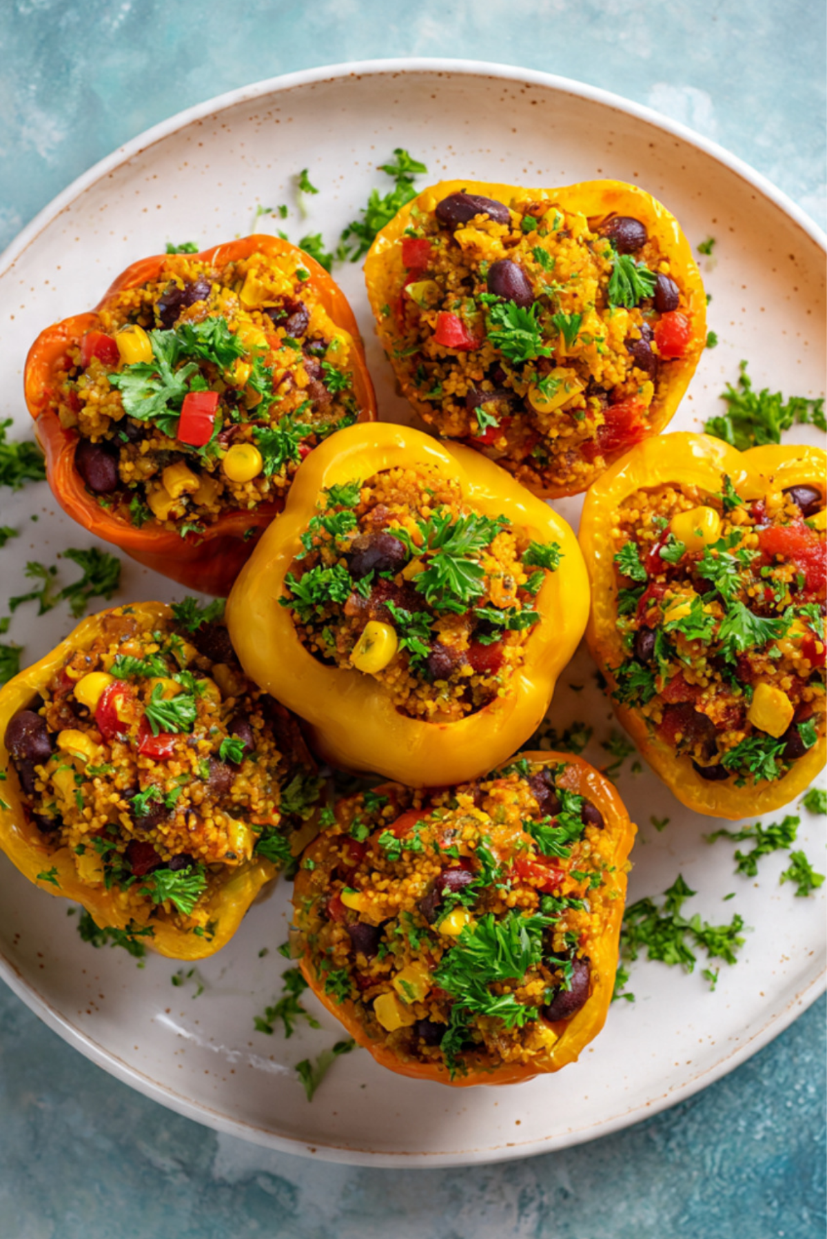 The magic lies in the contrast — the soft, roasted pepper shell against the hearty, chewy rice and tender beans. Juicy tomatoes keep things moist, while corn adds pops of sweetness. The cumin and paprika build a warming base that ties it all together. And that fresh herb sprinkle at the end? Game-changer.