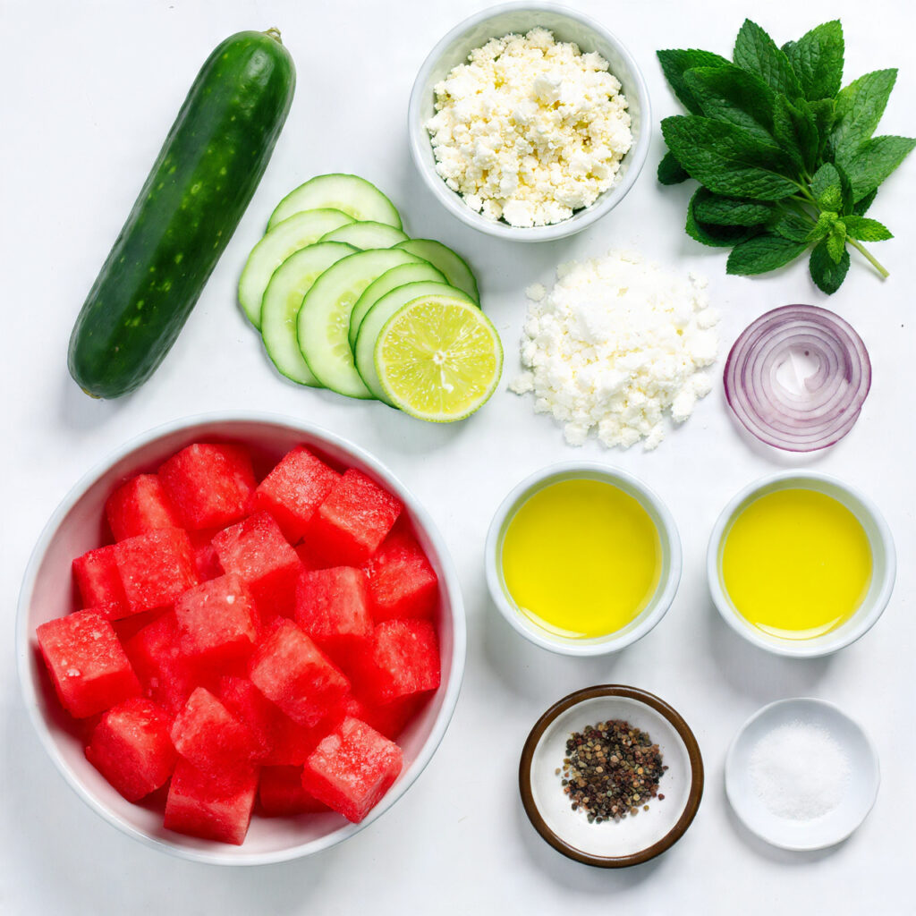 Ingredients in Watermelon-Cucumber Salad